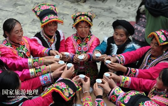 國家旅游地理 四川阿壩11月2日訊 11月2日,身著節(jié)日盛裝的四川省阿壩州汶川縣龍溪鄉(xiāng)村民們舉杯迎接羌歷新年的到來。當(dāng)日,四川省阿壩州汶川縣龍溪鄉(xiāng)舉行傳統(tǒng)儀式迎接即將到來的羌歷新年。今年的11月3日農(nóng)歷十月初一是羌歷新年,這是羌族一年中最為隆重的“慶豐收、送祝福、祈平安”的節(jié)日,按民間習(xí)俗,過羌年時要還愿敬神,全寨人歡聚一堂,吃團圓飯,共慶佳節(jié)。 /新華社發(fā)(何海洋 攝)