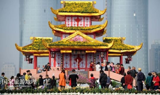 國(guó)家旅游地理 江西南昌11月7日訊 菊花展上微縮版“滕王閣”高9米(11月7日攝)。11月7日,在江西南昌市紅谷灘新區(qū)舉行的第25屆菊花展上,100萬(wàn)盆各色菊花爭(zhēng)奇斗艷,吸引了眾多游客和市民前來觀賞。 /新華社記者 周科 攝