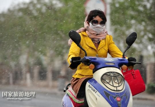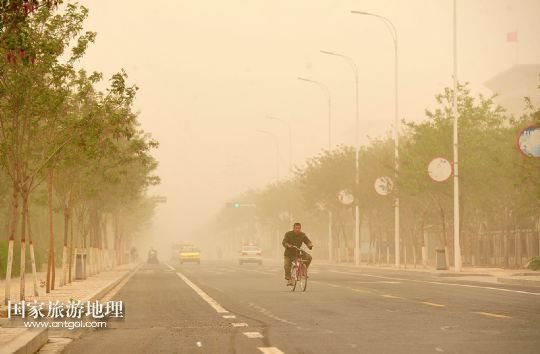 國家旅游地理 寧夏中衛(wèi)4月24日訊 4月24日,在寧夏回族自治區(qū)中衛(wèi)市,一位市民在沙塵天氣中騎行。當(dāng)日,寧夏回族自治區(qū)中北部地區(qū)遭遇強(qiáng)沙塵天氣,寧夏氣象臺于當(dāng)日7時40分發(fā)布沙塵暴黃色預(yù)警信號:預(yù)計未來12小時內(nèi)全區(qū)大部有5-6級偏北風(fēng),陣風(fēng)7-8級,伴有揚(yáng)沙或浮塵天氣,銀川、石嘴山、吳忠、中衛(wèi)四市的部分地區(qū)可能出現(xiàn)能見度小于1000米的沙塵暴天氣。 /新華社記者 彭昭之 攝