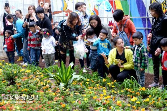 4月27日,游客在“蝴蝶谷”觀賞花叢中的蝴蝶。