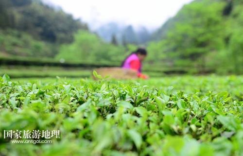 麻柳溪村的村民在茶園采茶(4月27日攝)