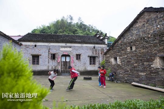 國(guó)家旅游地理 江西九江5月12日訊 5月12日,孩子們坐在土目源村的老房子前玩耍。空幽的山谷,不息的溪流,斑駁的石墻,古樸的石屋。在江西省北部山區(qū),有一座石屋山居的古村落——都昌縣大港鎮(zhèn)土目源村。