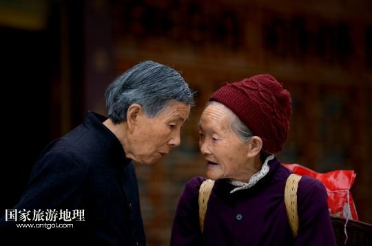 5月24日,板寮村兩位老人在吊腳樓前聊天。