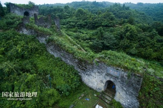 國家旅游地理 德國波恩7月4日訊 從空中看貴州播州海龍屯飛鳳關(guān)(7月3日攝)。海龍屯遺址位于遵義老城北約30里的龍巖山東麓,始建于1257年,毀于1600年。遺址所在山峰相對高度約350米,三面環(huán)水,一面銜山,地勢險(xiǎn)要,如今周長約6公里的環(huán)囤城墻尚存,囤東銅柱、鐵柱、飛虎、飛龍、朝天、飛鳳六關(guān),囤西后關(guān)、西關(guān)、萬安三關(guān)依然屹立。囤頂平闊,囤內(nèi)遺有“老王宮”和“新王宮”兩組重要建筑基址,面積均在2萬平方米左右,此外尚有金銀庫、四角亭、采石場、校場壩、環(huán)囤馬道和敵樓等遺跡。